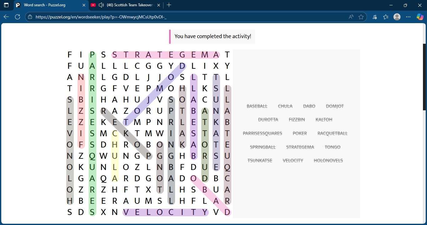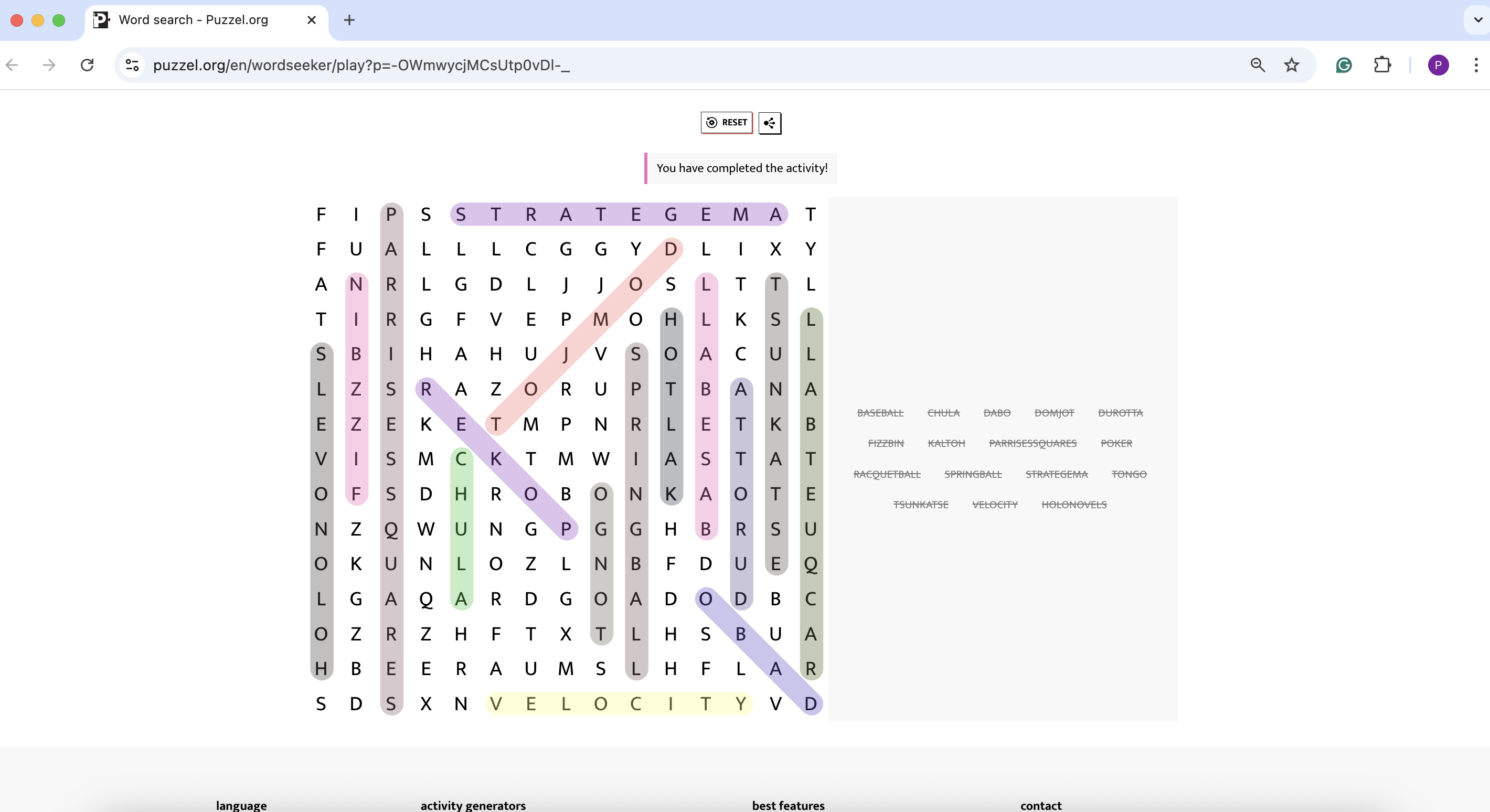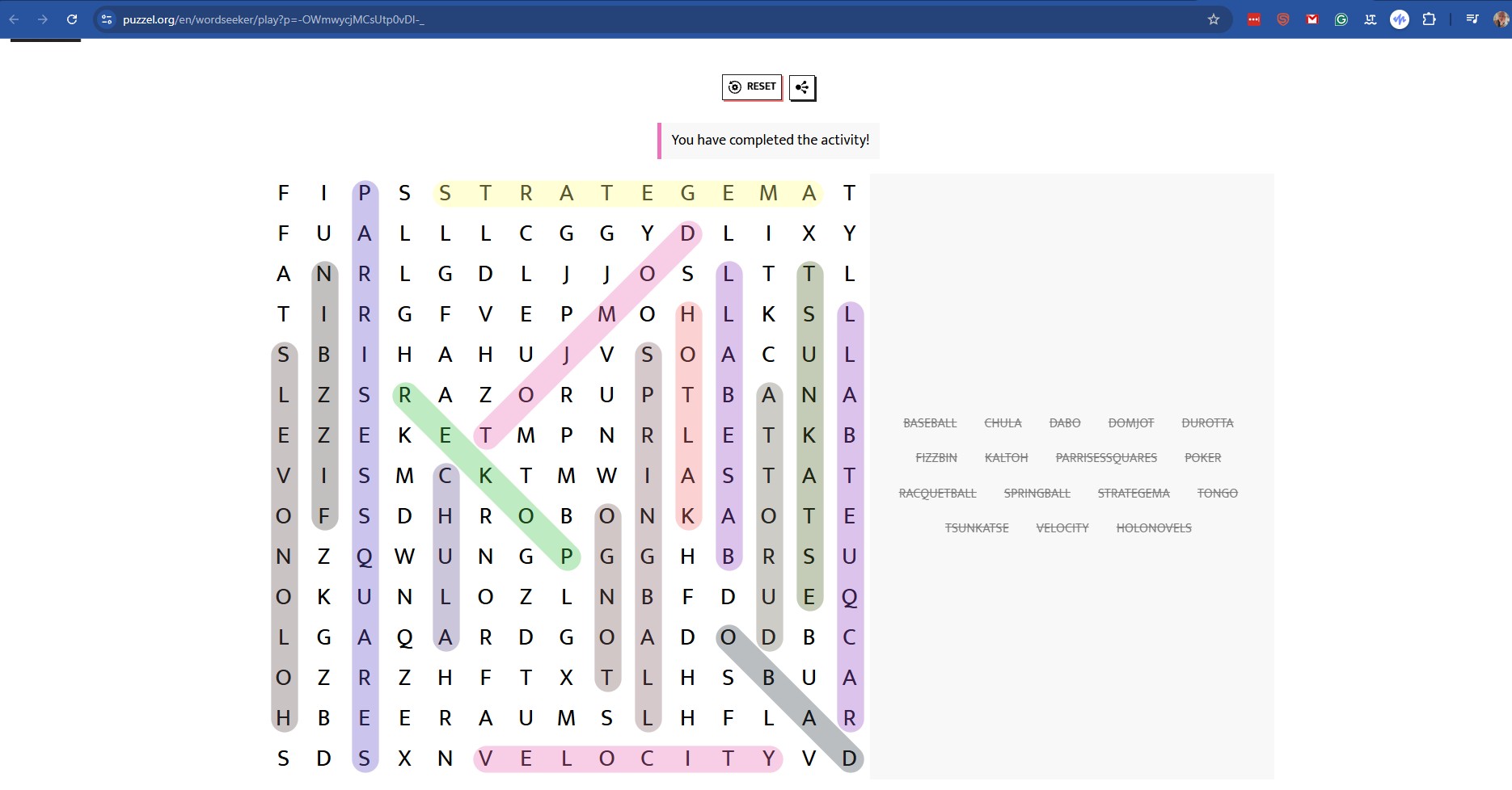 - Participants must submit a screenshot of their completed word search puzzle with the full browser window including the URL visible.