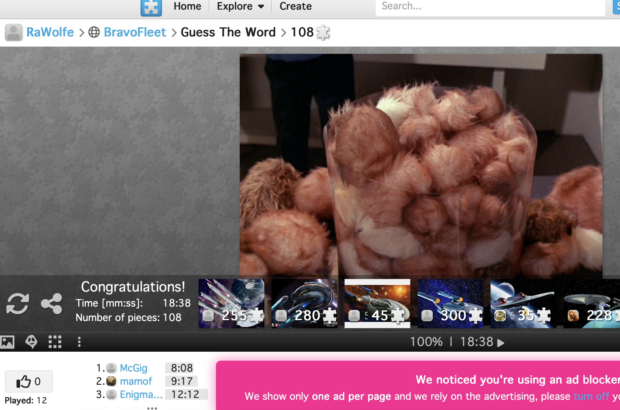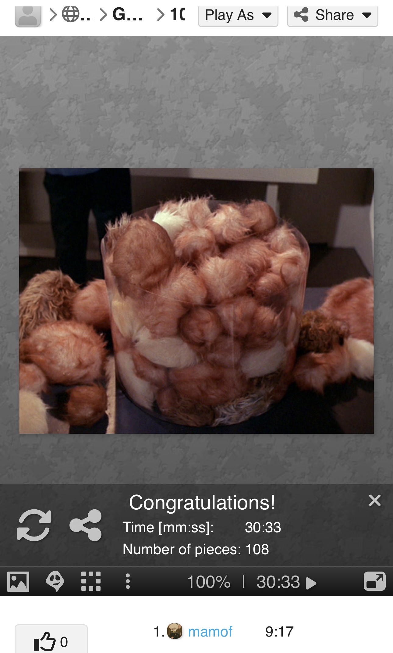 - The puzzle must be finished with 108 pieces and can't be changed.