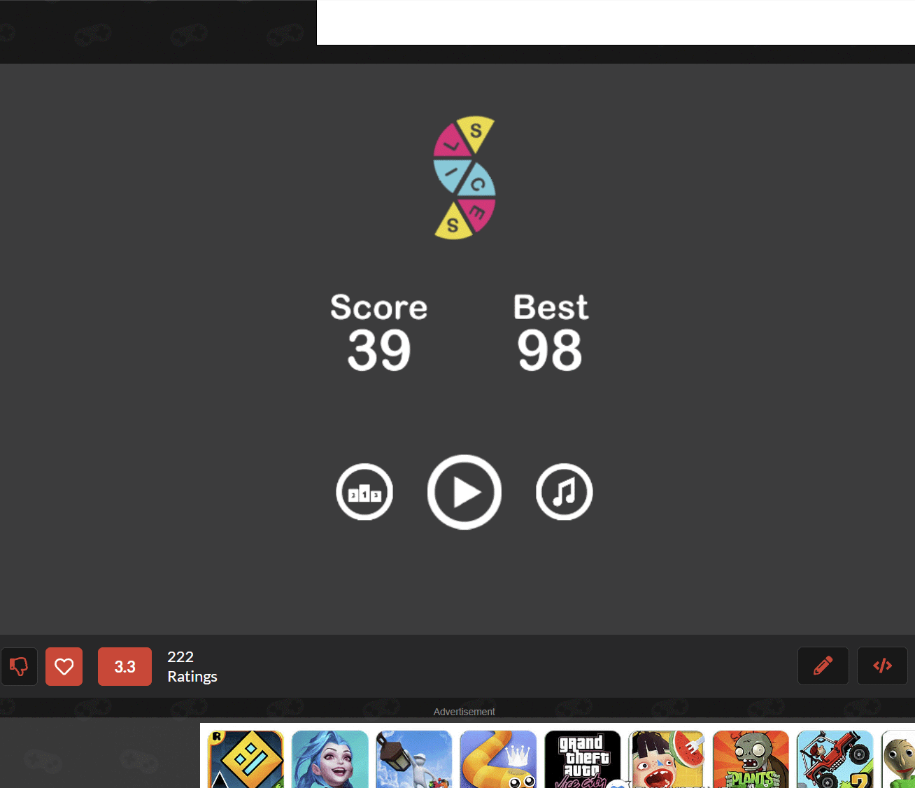 - Submissions will be judged on the highest 'BEST' score achieved. You can play as many times as you like before submitting.