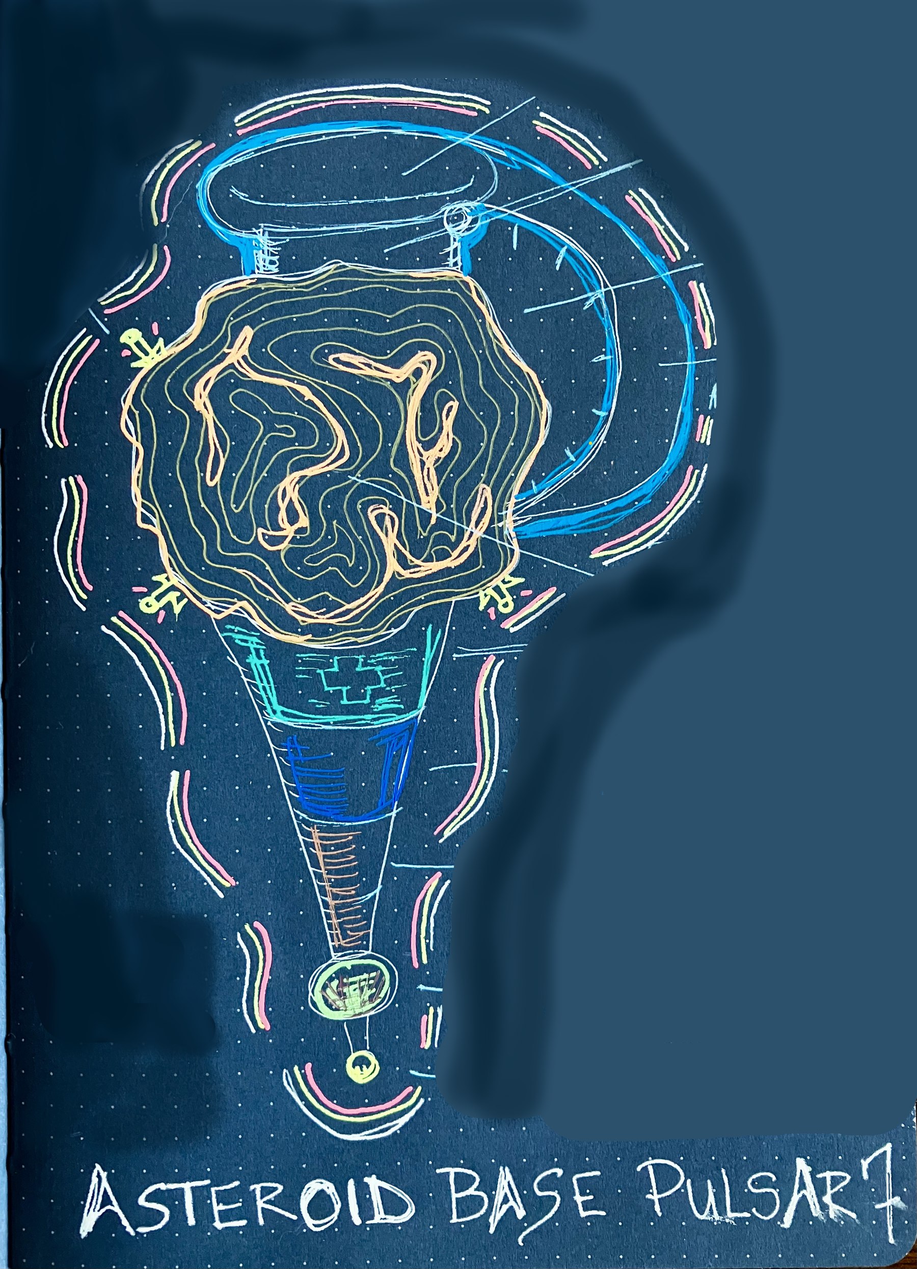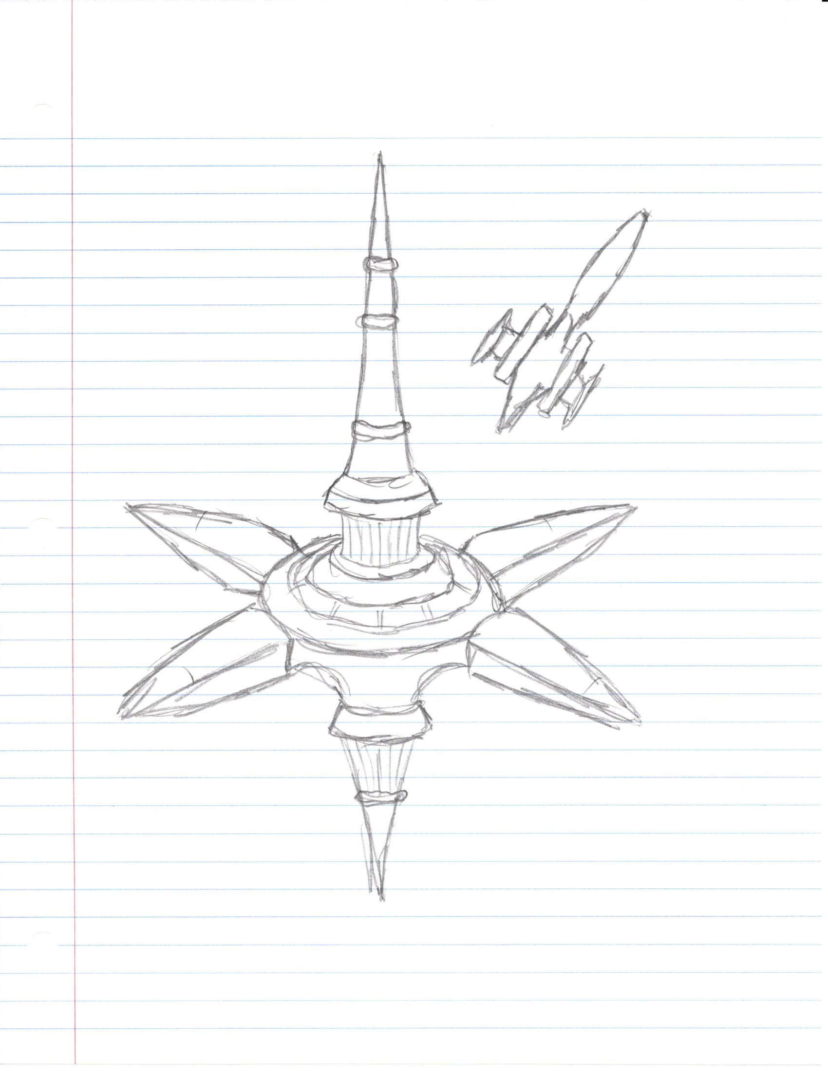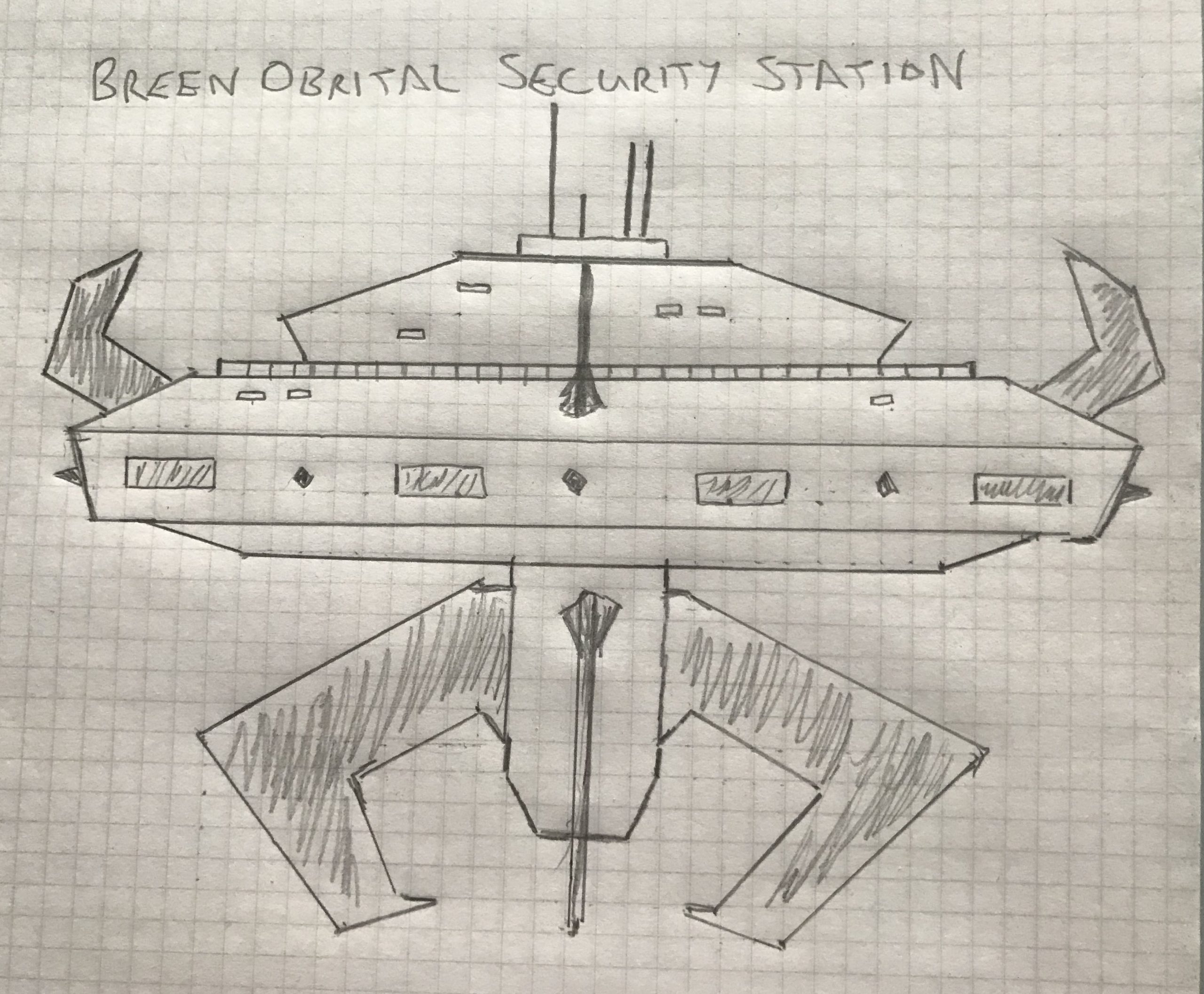 Draw or paint, graphically create a new design concept for a Space Station from any canon race. This should be in the form of a rough design sketch or a napkin doodle. No design components can be described, no words other than a title are allowed on the drawing/painting/graphic.