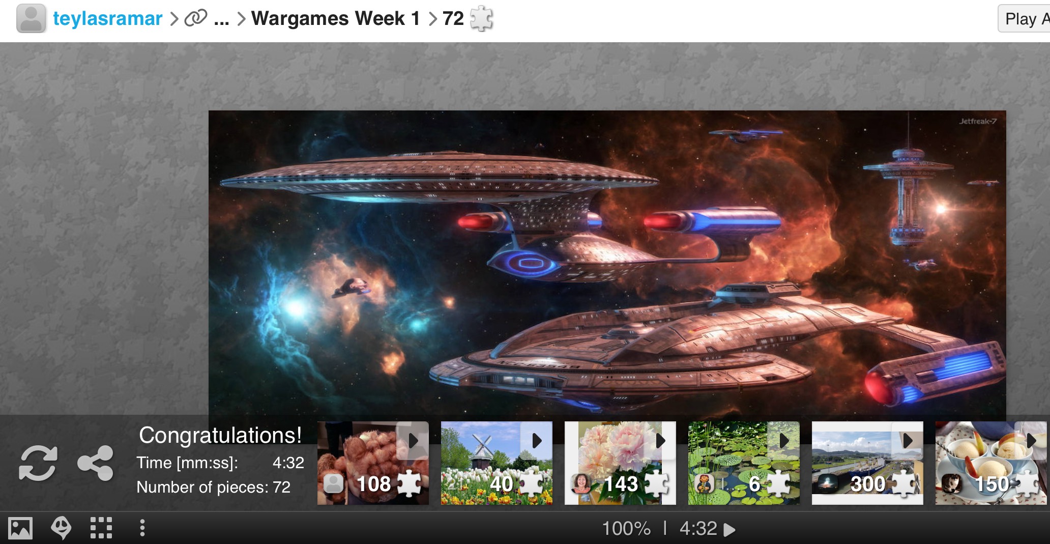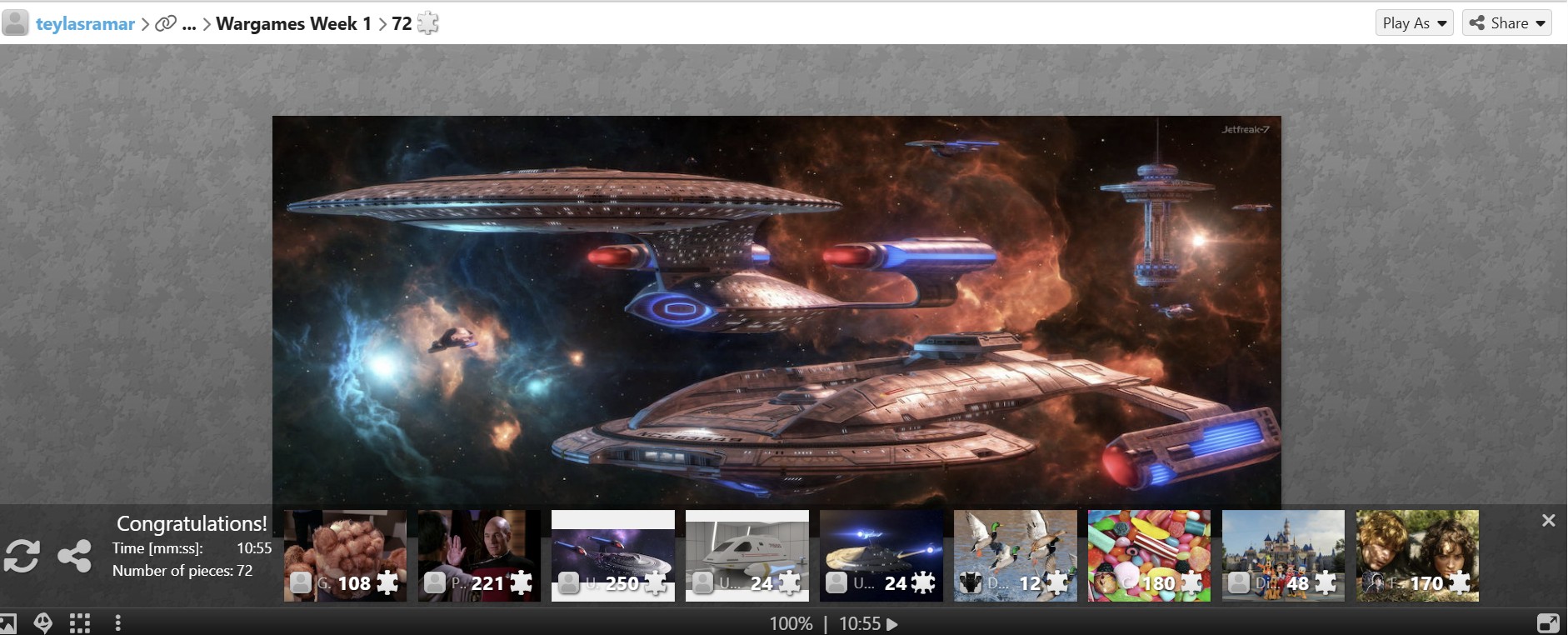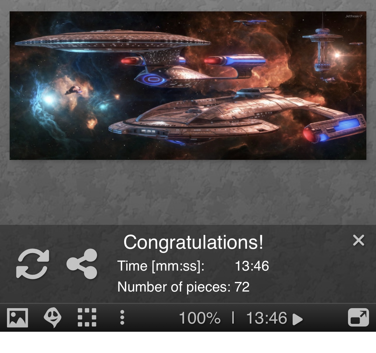 - Participants must submit a screenshot of their puzzle, showing the final time and piece count. Failure to include ANY of these pieces of information will disqualify your entry.
