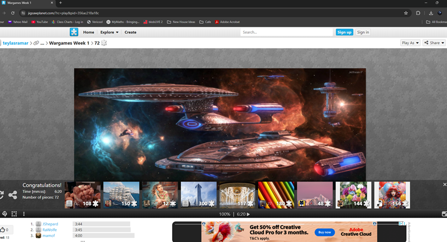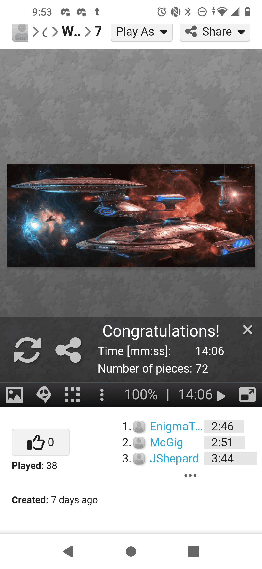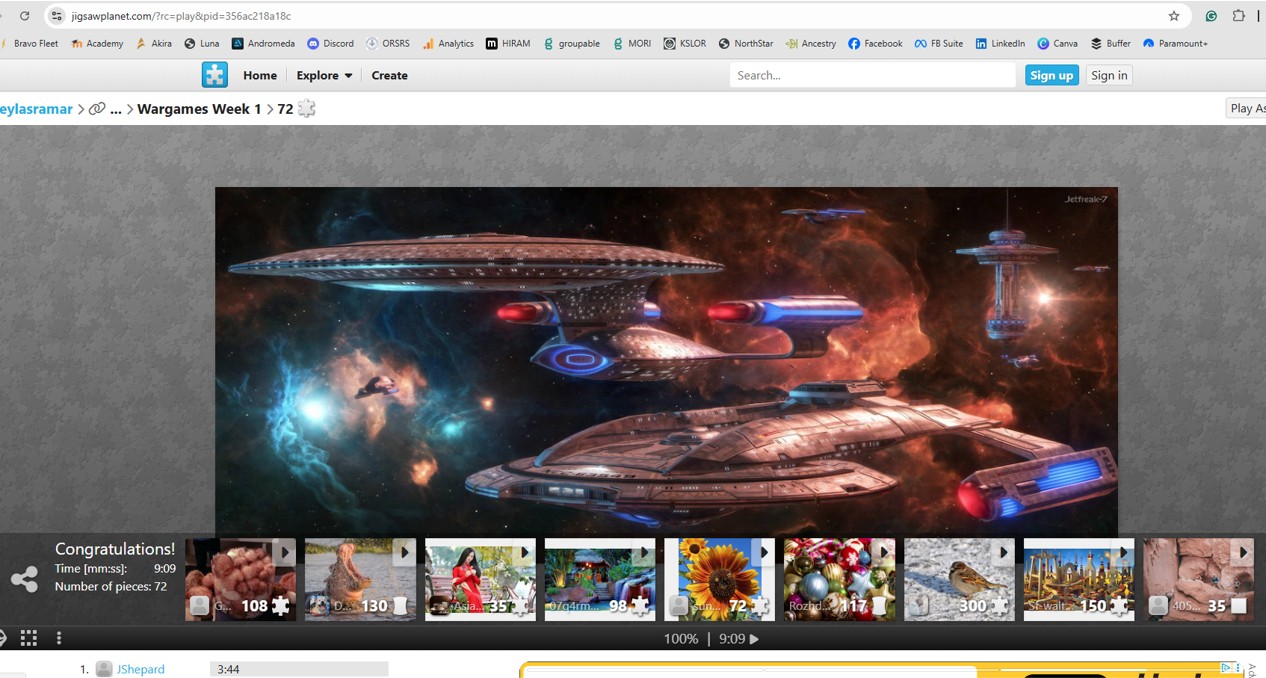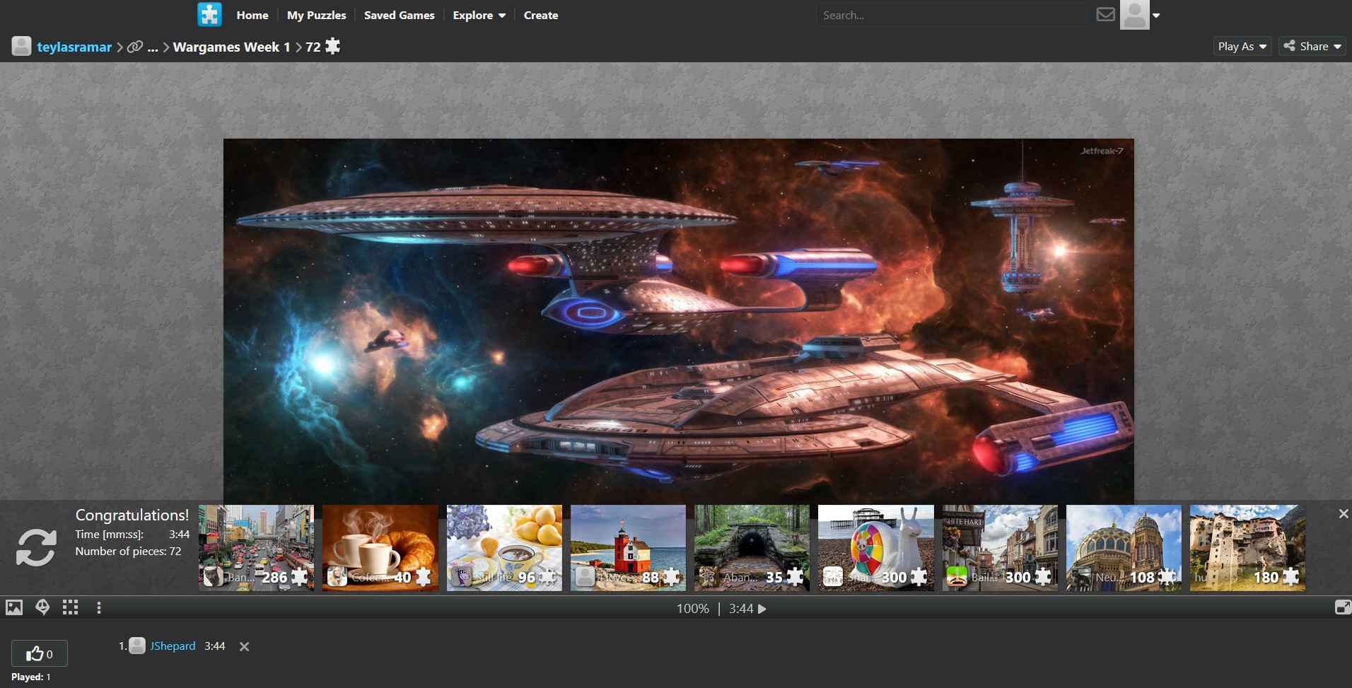 - Participants must submit a screenshot of their puzzle, showing the final time and piece count. Failure to include ANY of these pieces of information will disqualify your entry.