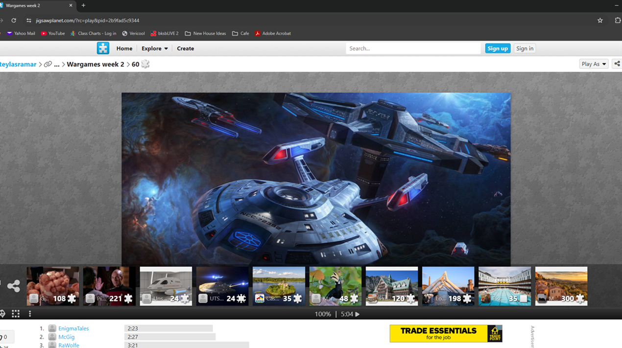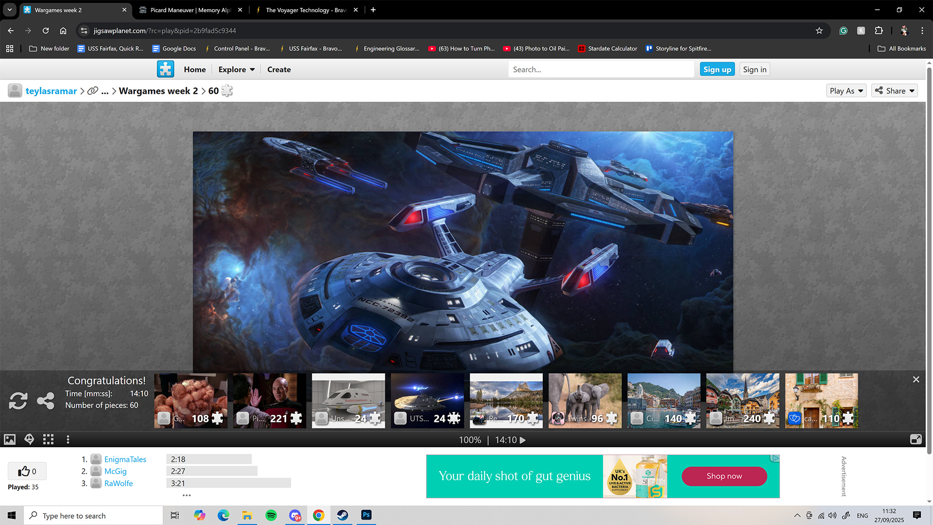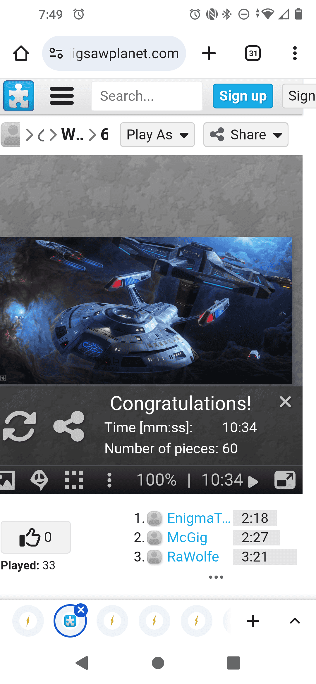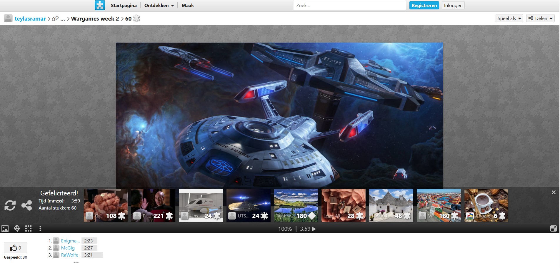 - Participants must submit a screenshot of their puzzle, showing the final time and piece count. Failure to include ANY of these pieces of information will disqualify your entry.